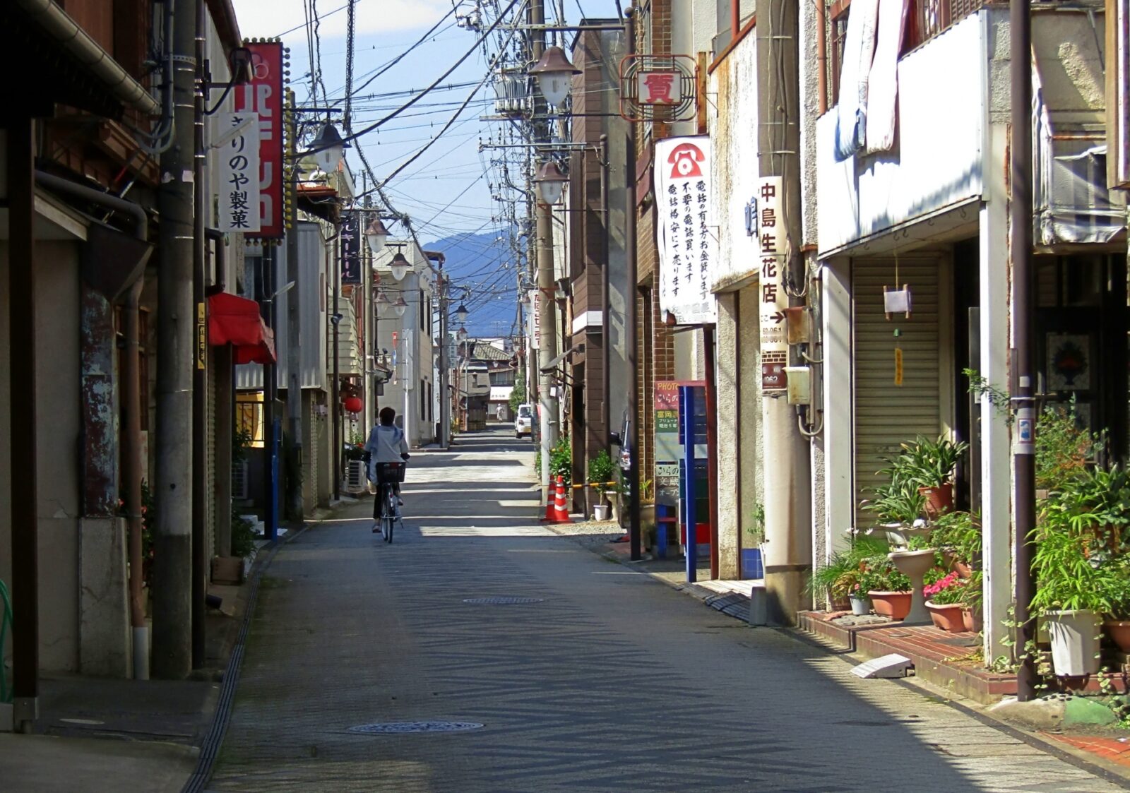 すれ違いが難しい狭い道があるのは、どの地域でも同じ。