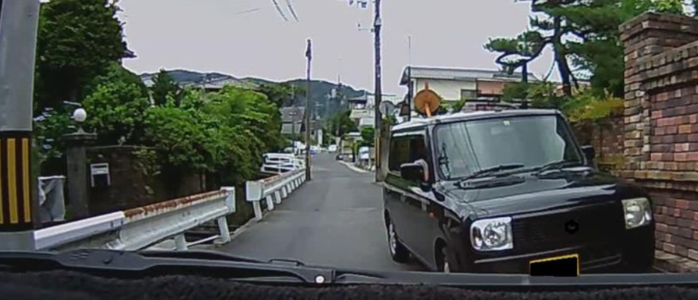 狭い道は広い道路と違って、区分が曖昧になるため自車、対向車、バイク、自転車、歩行者が入り乱れます。