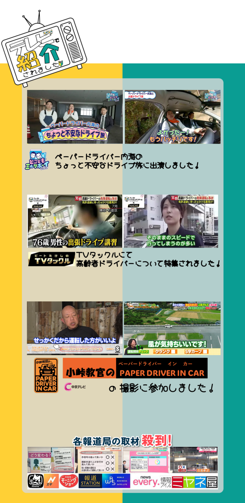 ペーパードライバー講習の他にも様々な講習を行なっておりますので参考にしてみてください。