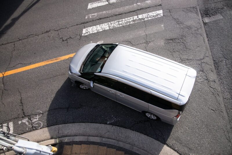 曲がる前に本来ハンドルを切り始める位置より少し前に出てからハンドルを切り始める