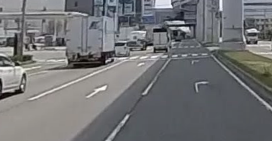 もし、一番左側の車線を走行中であれば、左から2番目の車線を走行している車が、自車の前に車線変更してきます。前の車の方向指示器など見ながら、「前の車が車線変更してくるかもしれない」と予測しておくと、余裕を持った運転ができますね。