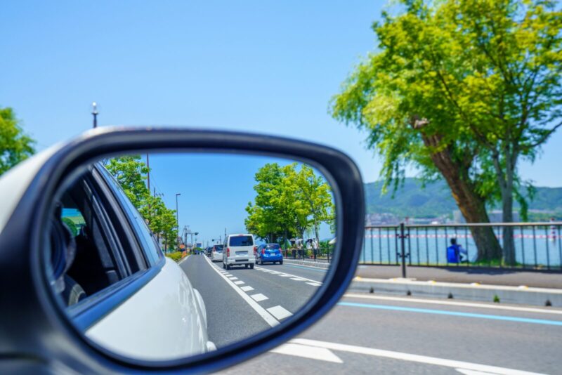 ①まずはサイドミラーで行きたい車線の後方を確認する。